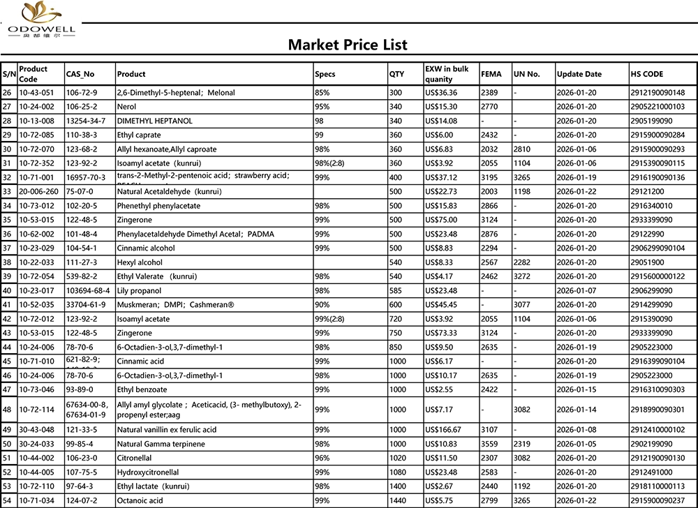 Odowell-Bảng giá thị trường-2025.12.27-2026.1.22
